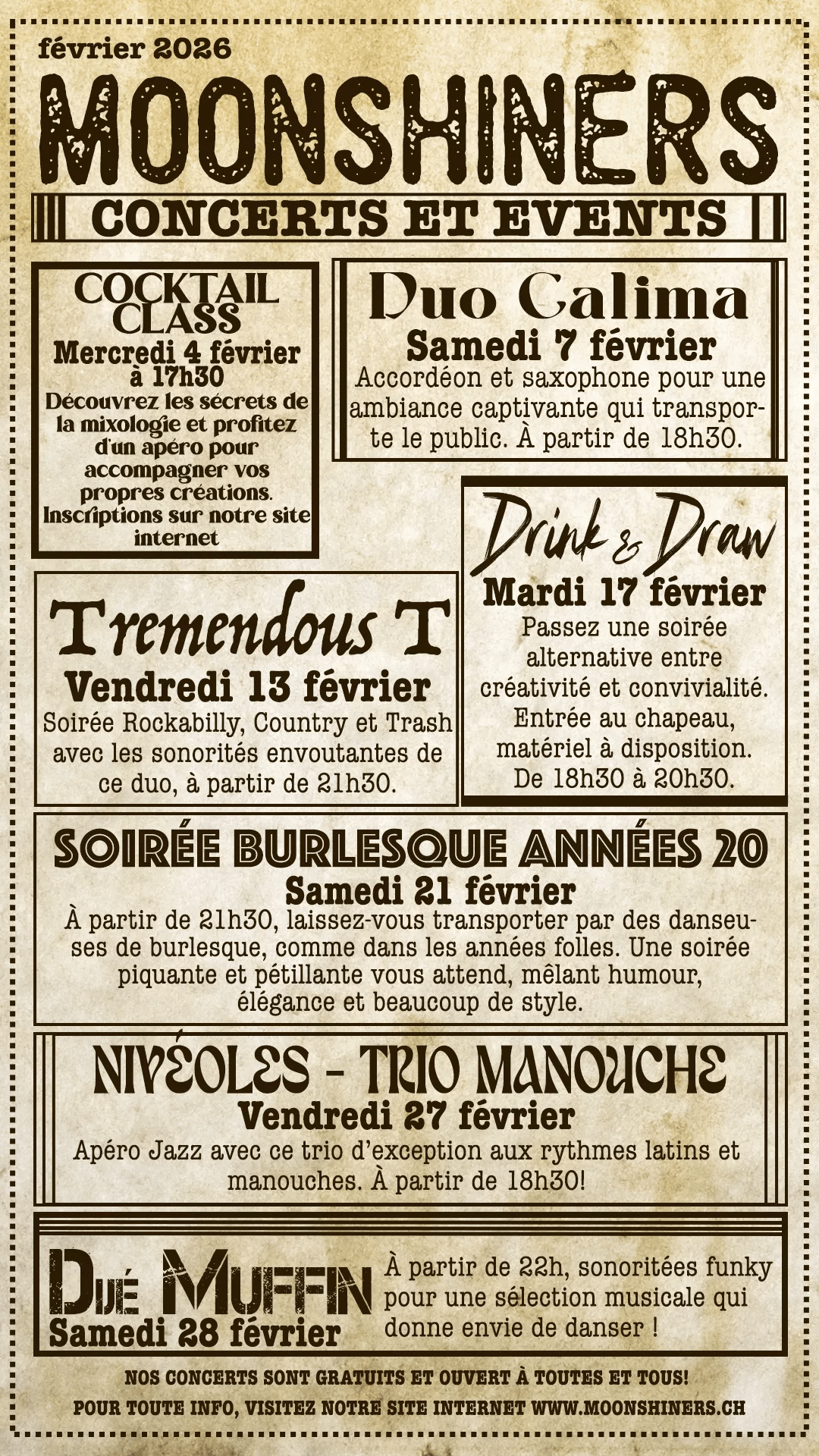 ✨ Février chez Moonshiners : concerts, créativité et soirées...